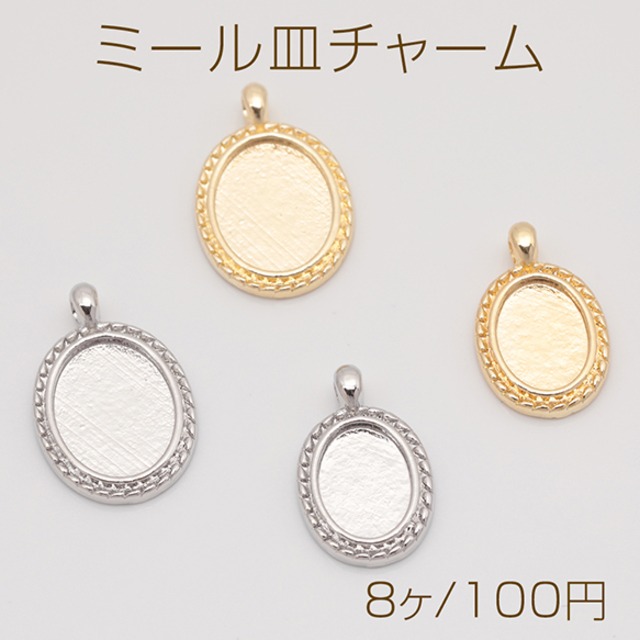M15570 ミール皿チャーム ラウンド 円形 UVレジン セッティング台 レジン台座 メタルチャーム 約12×15mm(8ヶ)
