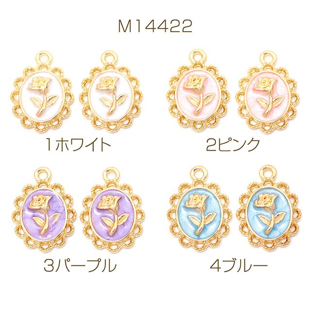 M14422 エポチャーム 春新色パステルカラー レース模様 オーバル型 花チャーム フラワーチャーム 約12×17mm (4ヶ入り)