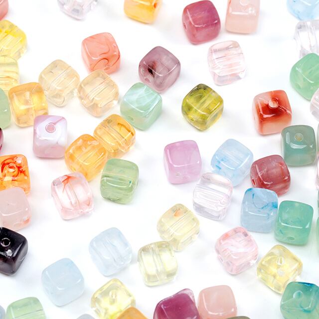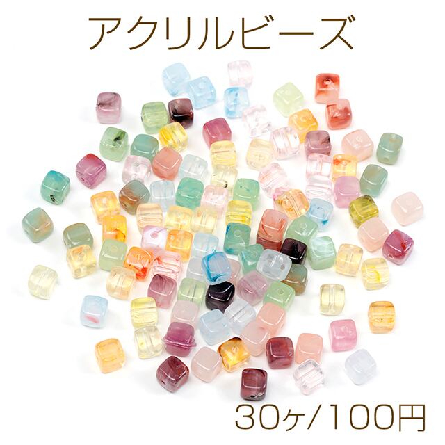 A766 アクリルビーズ 長方形 カラーミックス 穴あり 約7×7mm(ランダム30ヶ) | Beads&parts BASE2号店
