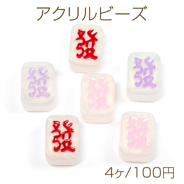 A1333 アクリルビーズ 麻雀 マージャンビーズ 發 ストラップ カスタマペン用蓄光ビーズ 縦穴 約19×25mm (4ヶ) | Beads&parts BASE2号店