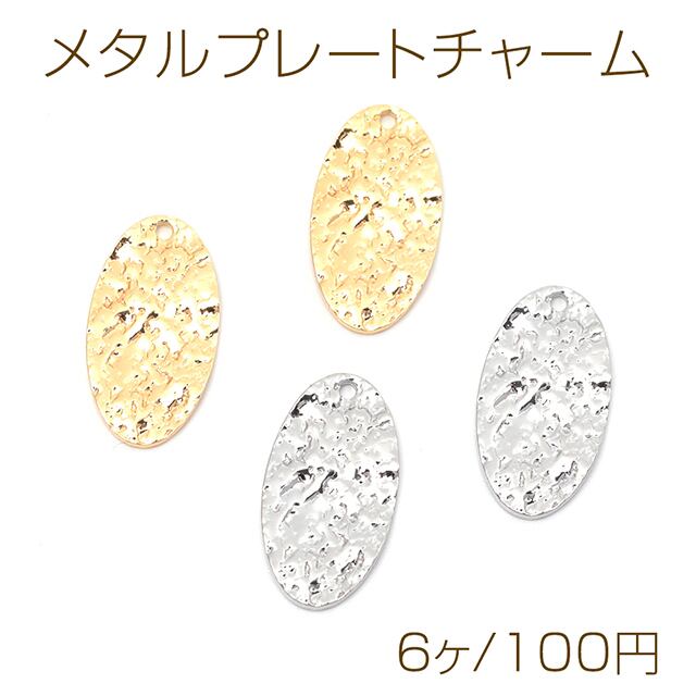 M14622 メタルプレートチャーム 銅製 凹凸加工 オーバル 楕円形 メタルチャーム メタルパーツ 1穴 約10×19mm(6ヶ) | Beads&parts BASE2号店