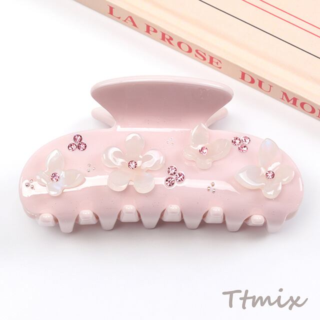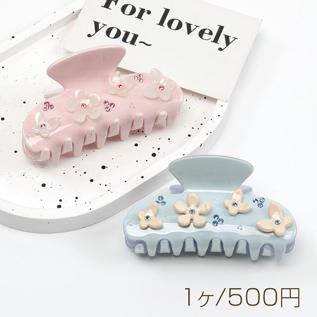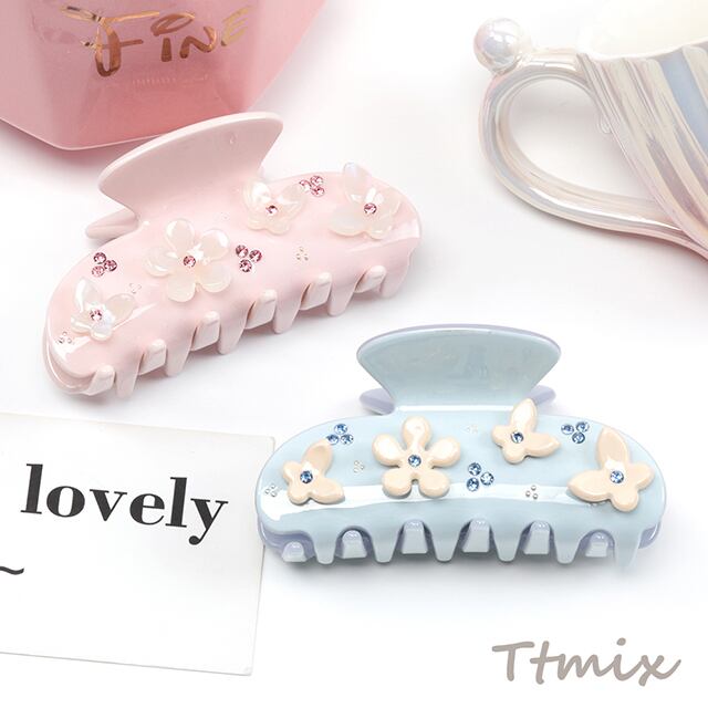 TH874 バンスクリップ アセテート フラワー 花 ミルキーカラー ヘアアクセサリー 髪飾り 約4×8cm(1ヶ)※メール便不可