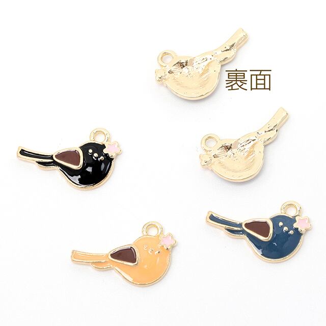 M14746 エポチャーム 合金製 ことり 鳥 花付き アニマル 動物 メタルチャーム 1カン付き 約11×17mm(4ヶ) | Beads&parts BASE2号店