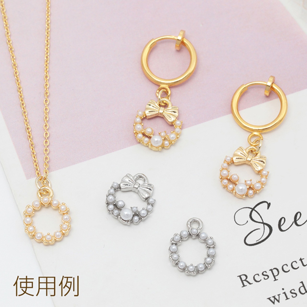 M14778 メタルチャーム メタルパーツ フラワー お花 パール付き 合金製 約9×12mm(4ヶ) | Beads&parts BASE2号店