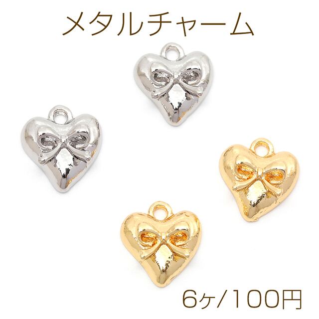 M14796 メタルチャーム 合金製 ハート リボン メタルパーツ 約11×13mm(6ヶ) | Beads&parts BASE2号店