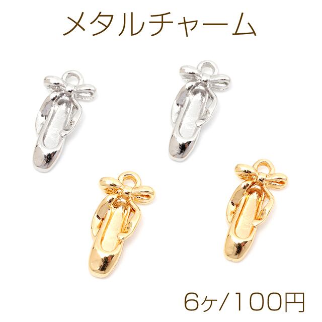 M14827 メタルチャーム 合金製 バレエシューズ リボン 踊り ダンス ミニチュア 飾り メタルパーツ 約7×14mm(6ヶ) | Beads&parts BASE2号店