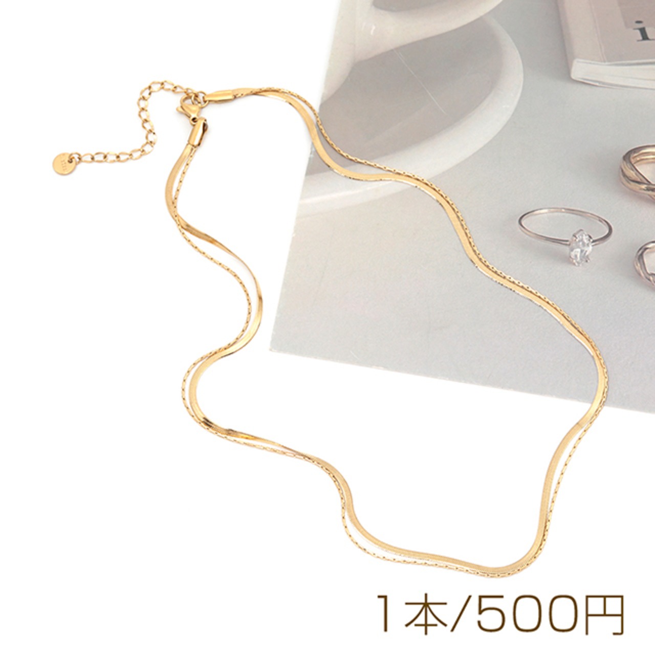 TN019 ネックレス ステンレス鋼 2重 ダブルチェーン シンプル デザインチェーン 長さ約40+6cm(1本) | Beads&parts BASE2号店