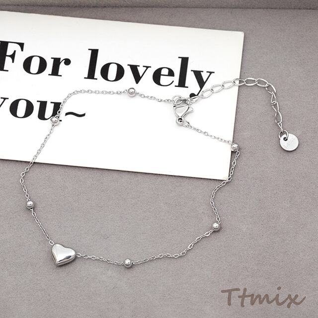 TN024 アンクレット ステンレス鋼 ハート 丸玉 シンプル デザインチェーン 長さ約21+6cm(1本) | Beads&parts BASE2号店