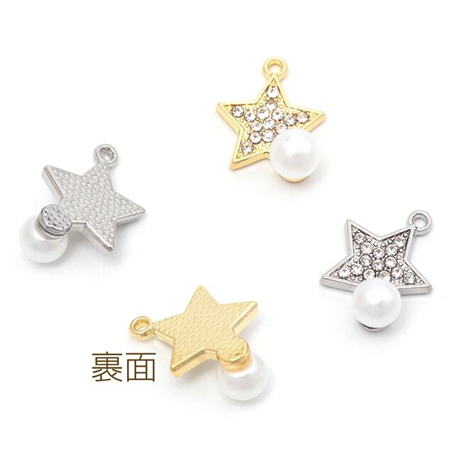 M14895 メタルチャーム スター 星型 パール付き 石付き ペンダントパーツ 合金製 約11×14mm(2ヶ) | Beads&parts BASE2号店