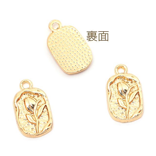 M14922 メタルチャーム 合金製 不規則長方形 チューリップ フラワー メタルパーツ 1カン付き 約8×15mm(6ヶ) | Beads&parts BASE2号店