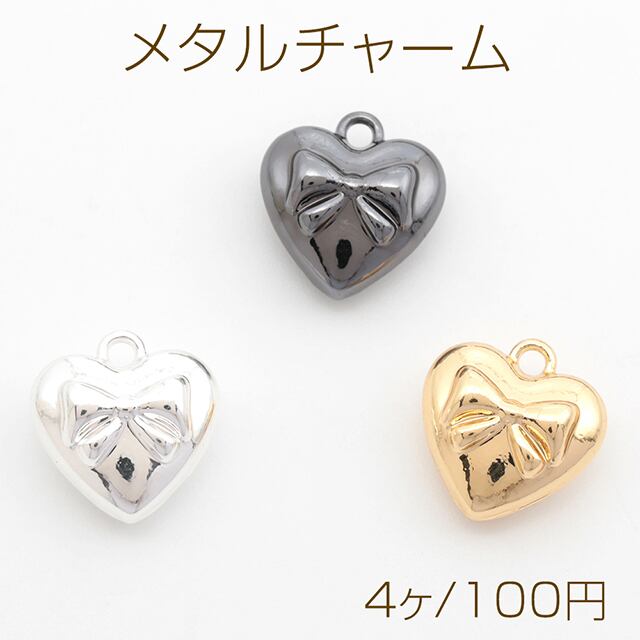 M14926 メタルチャーム 合金製 ハート リボン 立体 メタルパーツ 約12×13mm(4ヶ) | Beads&parts BASE2号店
