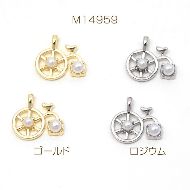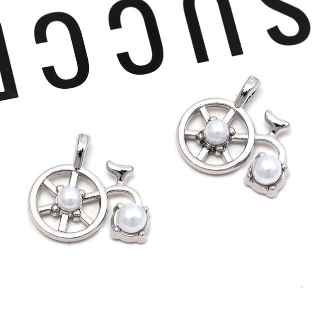 M14959 メタルチャーム 合金製 自転車 サイクリング 乗り物 ABSパール付き メタルパーツ 約13×14mm(4ヶ) | Beads&parts BASE2号店