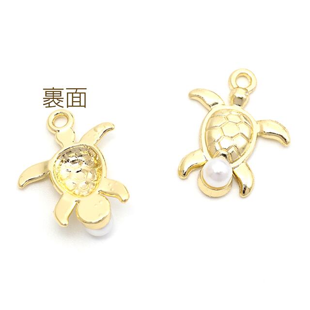 M14978 メタルチャーム 合金製 かめ 亀 ABSパール付き 半面 マリンチャーム メタルチャーム 約12×16mm(4ヶ) | Beads&parts BASE2号店