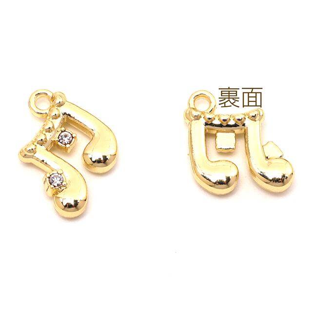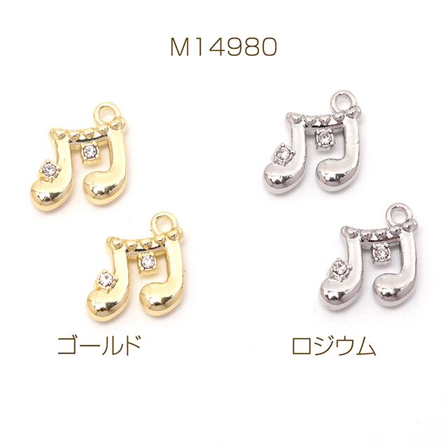 M14980 メタルチャーム 合金製 音符 リズム 音楽 楽譜 ガラスストーン付き メタルチャーム 約12×12mm(4ヶ) | Beads&parts BASE2号店