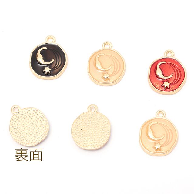M15017 エポチャーム 合金製 星と月 夜空 不規則ラウンド カメオ風チャーム メタルチャーム 約12×15mm(4ヶ) | Beads&parts BASE2号店