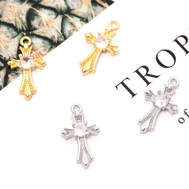 M15025 ジルコニアチャーム 銅製 クロス 十字架 メタルチャーム 約8×15mm(2ヶ) | Beads&parts BASE2号店
