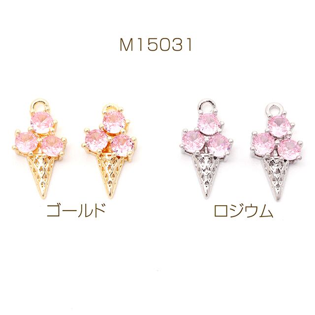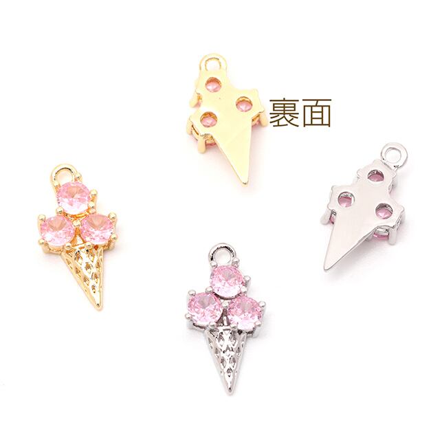 M15031 ジルコニアチャーム 銅製 アイスクリーム スイーツ お菓子 ラインストーン メタルチャーム 約7×14mm(2ヶ) | Beads&parts BASE2号店