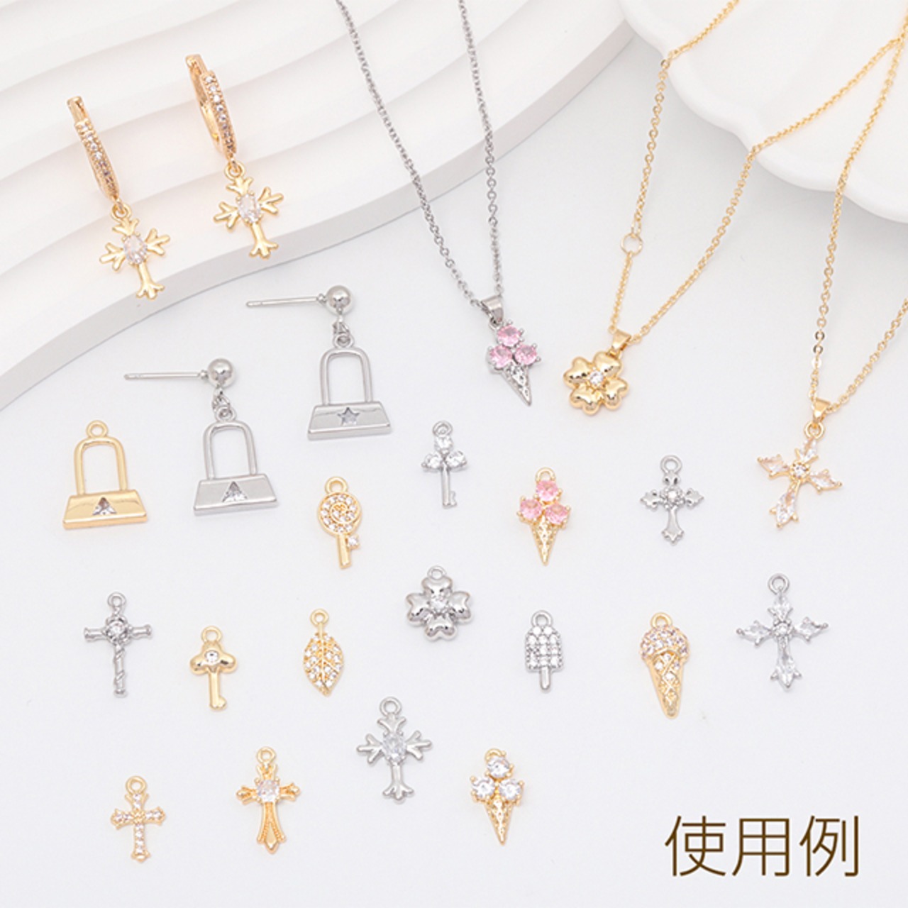 M15031 ジルコニアチャーム 銅製 アイスクリーム スイーツ お菓子 ラインストーン メタルチャーム 約7×14mm(2ヶ)
