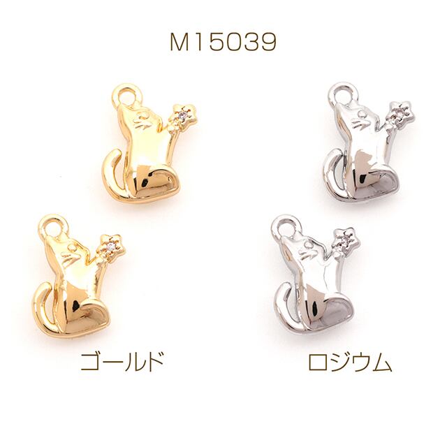 M15039 ジルコニアチャーム 銅製 ねこ 猫 横向き メタルチャーム 約9×12mm(2ヶ) | Beads&parts BASE2号店