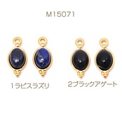 M15071 ステンレス製天然石チャーム 高品質 メタルチャーム オーバル 電気メッキ加工 SUS304 半貴石 約8×17mm(1ヶ)