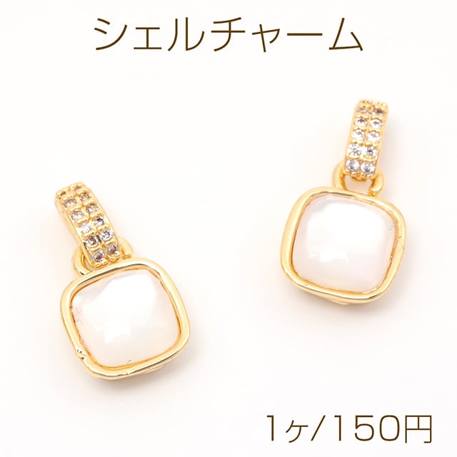 M15181 シェルチャーム スクエア 天然シェル 貝 ラインストーン付き メタルパーツ 約9×12mm(1ヶ) | Beads&parts BASE2号店