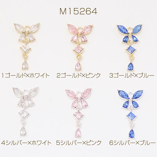 M15264 ガラスチャーム バタフライ 蝶々 キラキラ 揺れるストーン付き ペンダントトップ メタルチャーム 約16×32mm(1ヶ) | Beads&parts BASE2号店