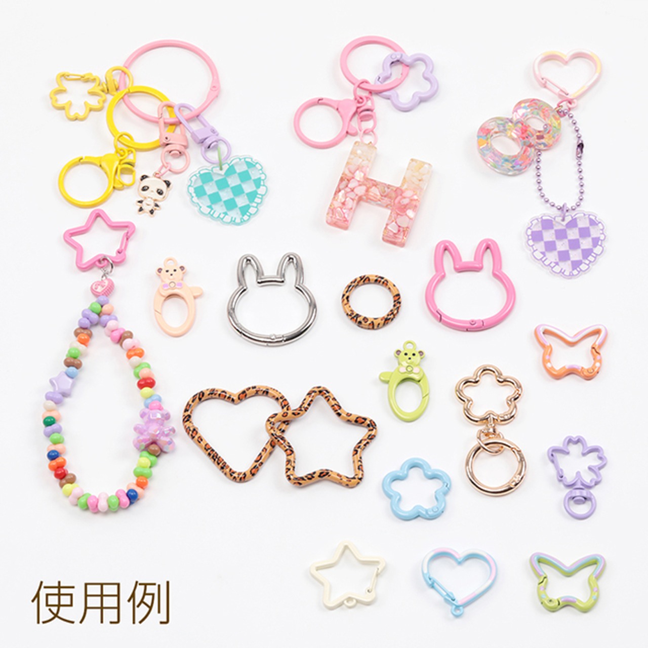 M15279 カラーキーホルダー金具 桜 フラワー 花 留め具 キーリング キーホルダー 回転カン付きフック金具 約24×36mm(2ヶ) | Beads&parts BASE2号店