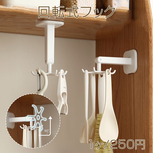 T524 回転式フック キッチン用品 キッチン収納 壁掛け ベルト収納 6本フック パンチフリー(1ヶ) | Beads&parts BASE2号店