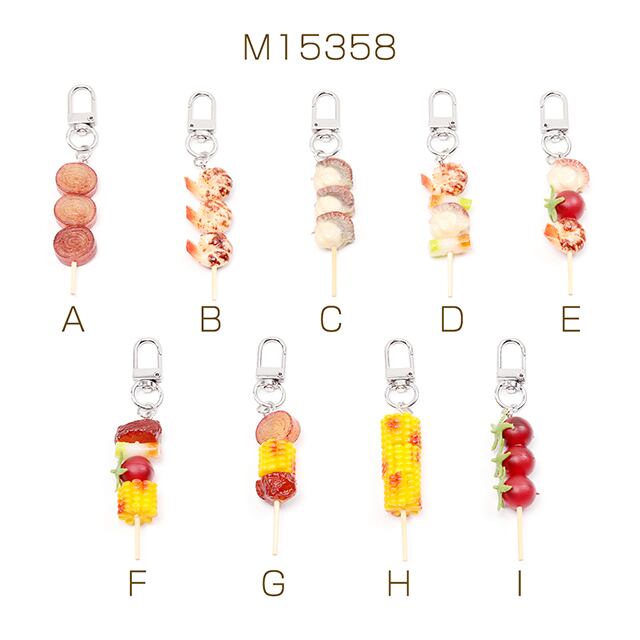 M15358 食品サンプルキーホルダー 串焼き 焼き鳥 海鮮焼き 夏祭り ミニチュアフード 回転カン付き 約1.8×10cm(1ヶ)