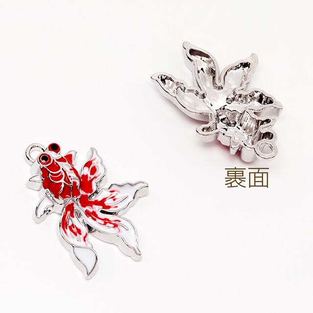 M7895 エポチャーム きんぎょ 金魚 夏 優雅 涼しげ 風流 金魚チャーム メタルチャーム 約18×26mm(2ヶ)