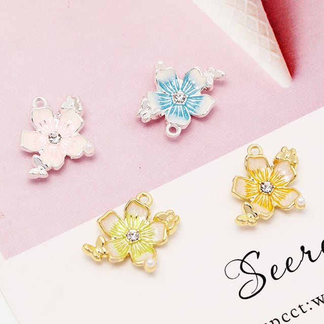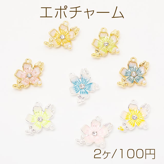 M8330 エポチャーム お花 フラワー 蝶々 ストーン付き パール付き メタルチャーム 約15×16mm(2ヶ) | Beads&parts BASE2号店