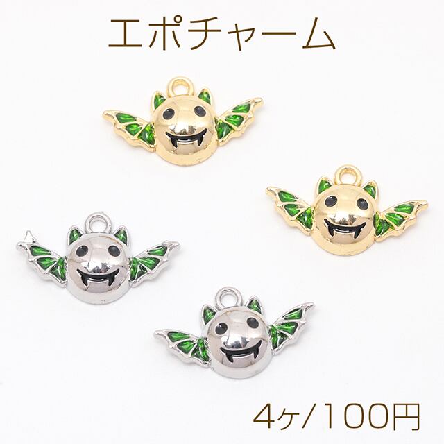 M6334 エポチャーム コウモリ 小悪魔 デビル オバケ ハロウィン メタルチャーム 約12×21mm(4ヶ) | Beads&parts BASE2号店