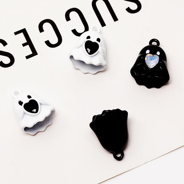 M6337 エポチャーム ゆうれい オバケ ハート ストーン付き ハロウィン メタルチャーム 約12×15mm(2ヶ) | Beads&parts BASE2号店