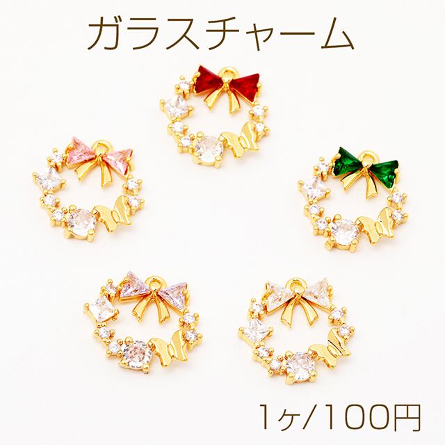 M5460 ガラスチャーム リース リボン 蝶々 ストーン付き キラキラ メタルチャーム 約16×17mm(1ヶ) | Beads&parts BASE2号店