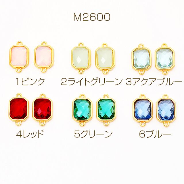 M2600 コネクターチャーム 八角形 ガラスチャーム 連結パーツ 接続金具 メタルチャーム 約9×15mm(2ヶ)
