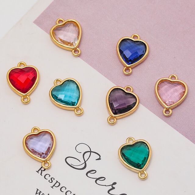 M2120 コネクターチャーム ハート ガラスチャーム 連結パーツ 接続金具 メタルチャーム 約10×14mm(2ヶ)