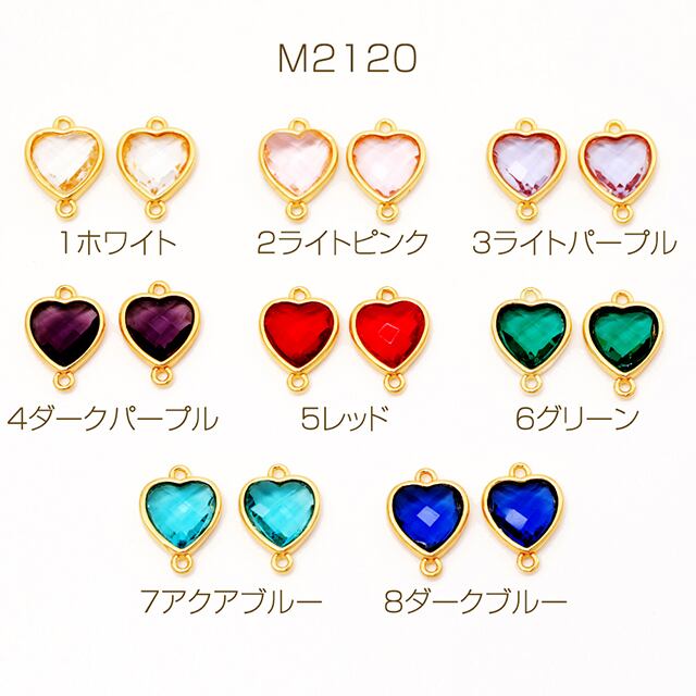 M2120 コネクターチャーム ハート ガラスチャーム 連結パーツ 接続金具 メタルチャーム 約10×14mm(2ヶ) | Beads&parts BASE2号店