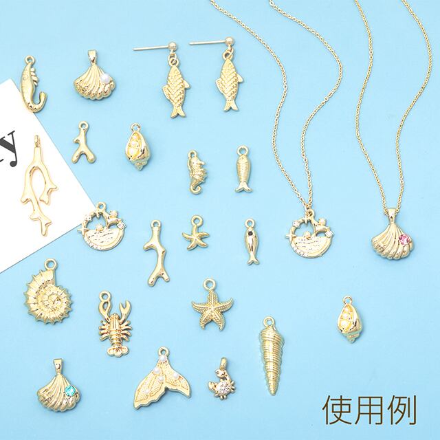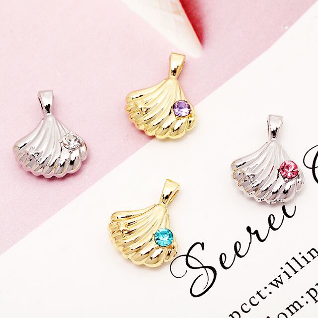M2298 メタルチャーム 貝殻 ホタテ ストーン付き 海 夏 マリンチャーム 約13×17mm(4ヶ) | Beads&parts BASE2号店