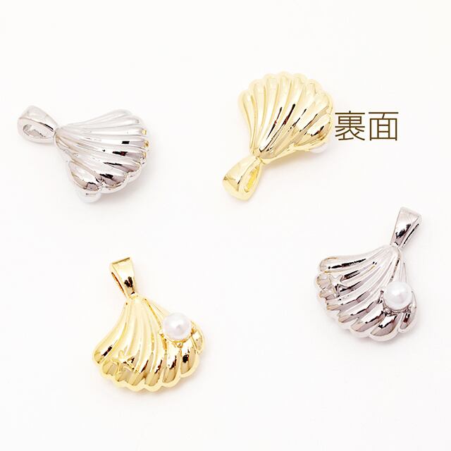 M1987 メタルチャーム 貝殻 ホタテ ABSパール付き 海 夏 マリンチャーム 約13×17mm(4ヶ) | Beads&parts BASE2号店