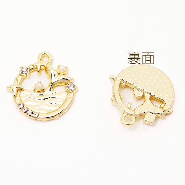 M1986 メタルチャーム 尾ひれ さかな イルカ クジラ ストーン付き 海 夏 マリンチャーム 約15×16mm(4ヶ) | Beads&parts BASE2号店