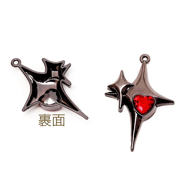 M15412 星チャーム スター 星 ハート ストーン付き ダークスイート メタルチャーム 約28×42mm(4ヶ) | Beads&parts BASE2号店