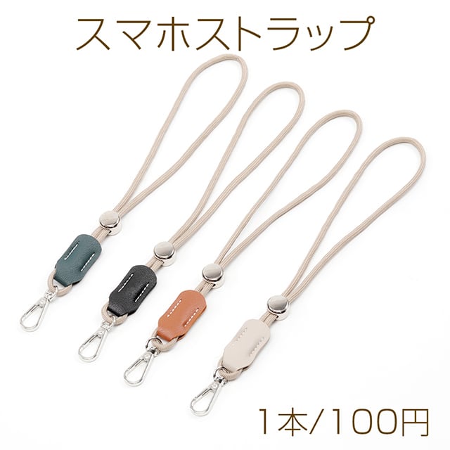 BL312 スマホストラップ ハンドストラップ 手首用 シック ワンポイントレザー カードホルダー キーホルダー 長さ約27cm(1本) | Beads&parts BASE2号店