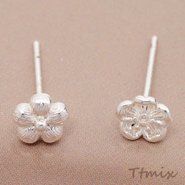 TE344 デザインピアス フラワー お花 アシンメトリー ワンポイントピアス メタルピアス 約6.5mm(1ペア)