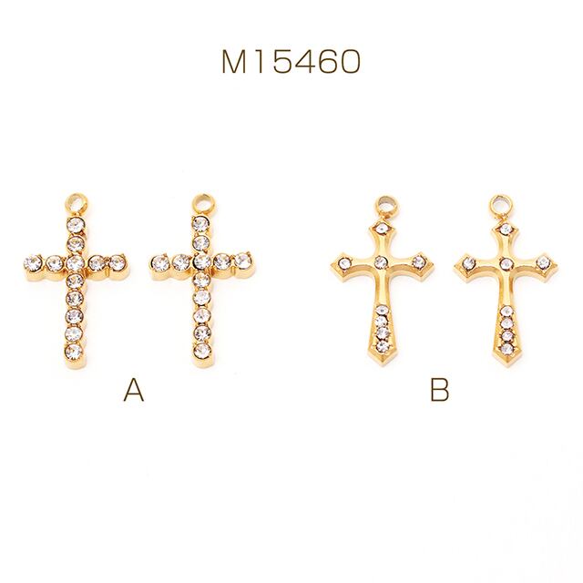 M15460 ステンレス製ガラスチャーム 十字架 クロス ラインストーン 電気メッキ加工 SUS304 メタルチャーム 全2種(1ヶ)
