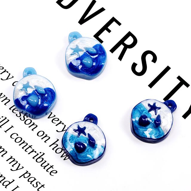 A5874 樹脂チャーム 絵画風 ヒトデ 貝殻 砂浜 ビーチ ラメ キラキラ 半面 1穴 マリンチャーム 約14×17mm(4ヶ) | Beads&parts BASE2号店