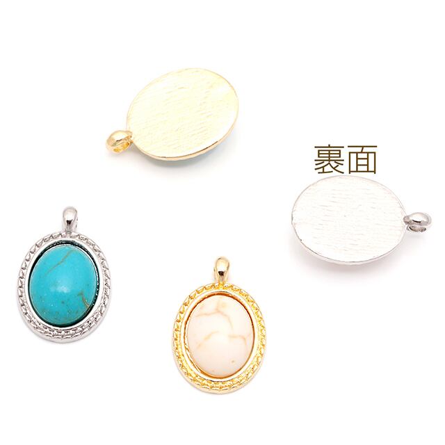 M15578 天然石チャーム 楕円形 オーバル ターコイズ メタルチャーム 約11×17mm(4ヶ) | Beads&parts BASE2号店