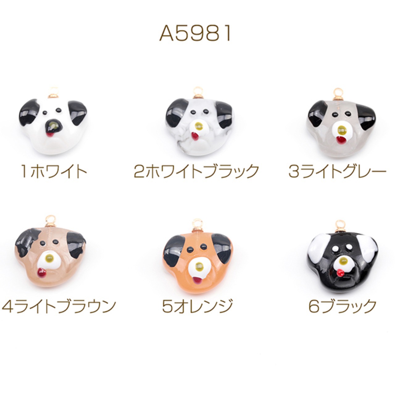A5981 アニマルチャーム 樹脂製 犬顔 イヌ 犬 ドッグ いぬチャーム 犬パーツ 動物チャーム カン付き 約15×17mm(2ヶ) | Beads&parts BASE2号店
