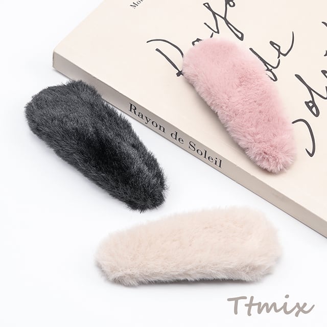 TH1476 バレッタ ふわふわ 秋冬用 可愛い ヘアアクセサリー 髪留め ヘアクリップ 約4×10cm(4ヶ) | Beads&parts BASE2号店