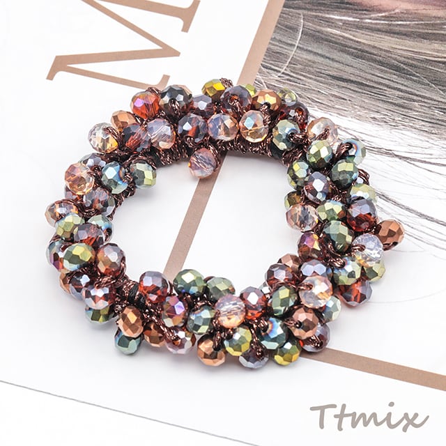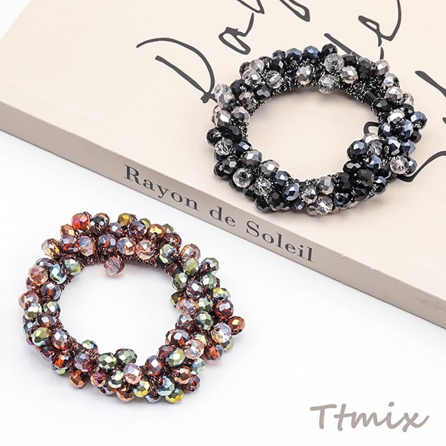 TH1477 ヘアゴム 手編み ガラスビーズ ラメ キラキラ 髪留め ヘアアクセサリー 単品 (1ヶ) | Beads&parts BASE2号店