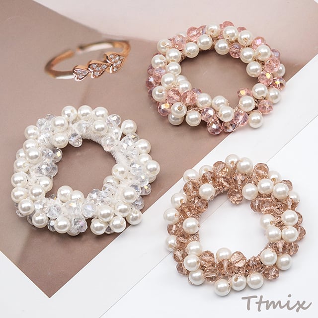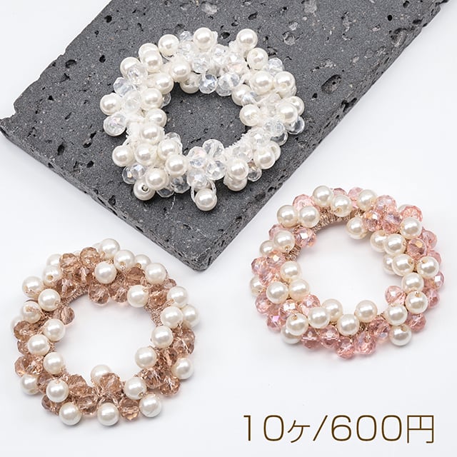 TH1479-10 ヘアゴム 手編み ABSパール ガラスビーズ ラメ キラキラ 髪留め ヘアアクセサリー お得セット(10ヶ) | Beads&parts BASE2号店